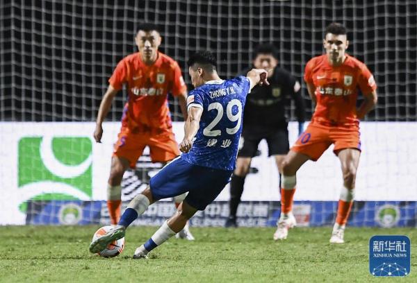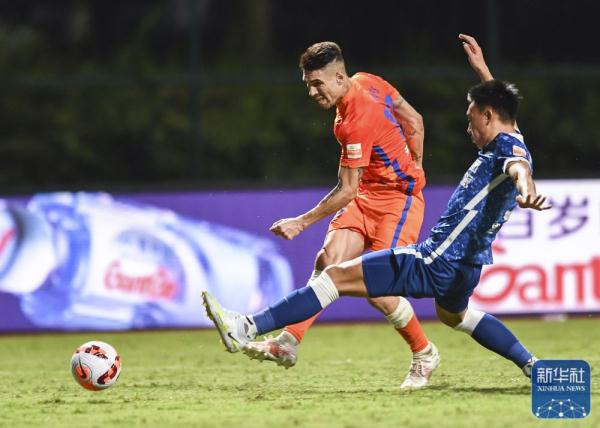 6月28日,在海南海口举行的2022赛季中国足球协会超级联赛第七轮比赛中,山东泰山队以2比0战胜河南嵩山龙门队。